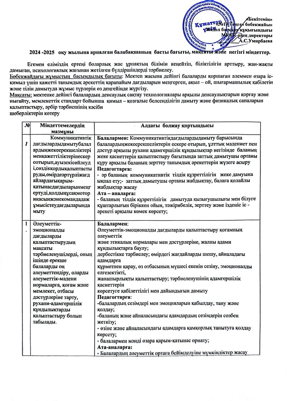 Бір тұтас тәрбие бағдарламасы